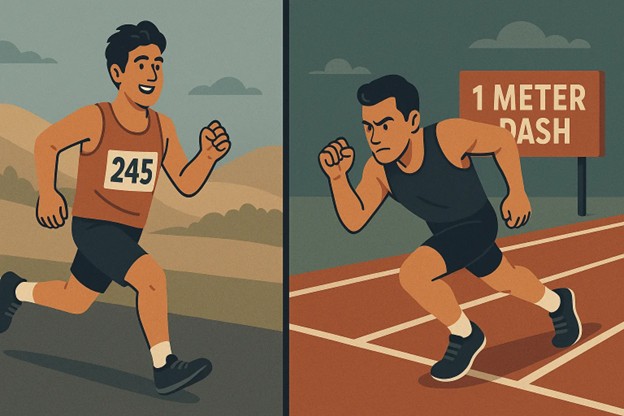 Another builds endurance with long, steady training.