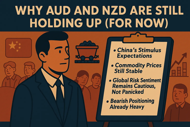 For now, the market is giving them the benefit of the doubt. But beneath the surface, the foundation is getting shakier — and the next few weeks could determine whether AUD and NZD can weather the storm or slip lower in line with growing fundamental pressures.