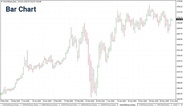 This will involve looking at bar charts or candlesticks, which you can see from the two images of Gold below.