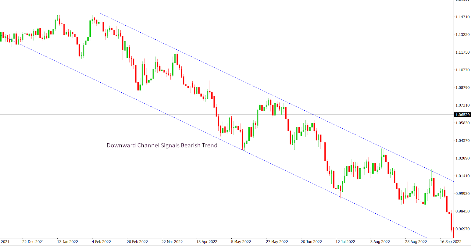 Likewise, the downward channel suggests a downward trend in the EUR/USD pair, therefore, Sarah might look for a selling trend.