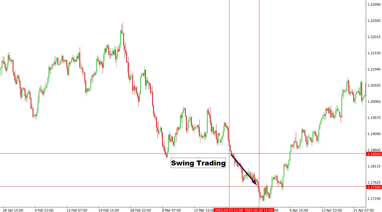 For example, let's consider Jack, a swing trader. He monitors a currency pair, EUR/USD, and notices it has dropped from 1.1850 to 1.1750 over a couple of days, a decrease of about 0.85%. He buys in at this lower price, anticipating a rebound. After a week, the price climbs to 1.1900, a rise of 1.27% from his buying point. Jack sells at this peak, securing returns from this swing in prices.