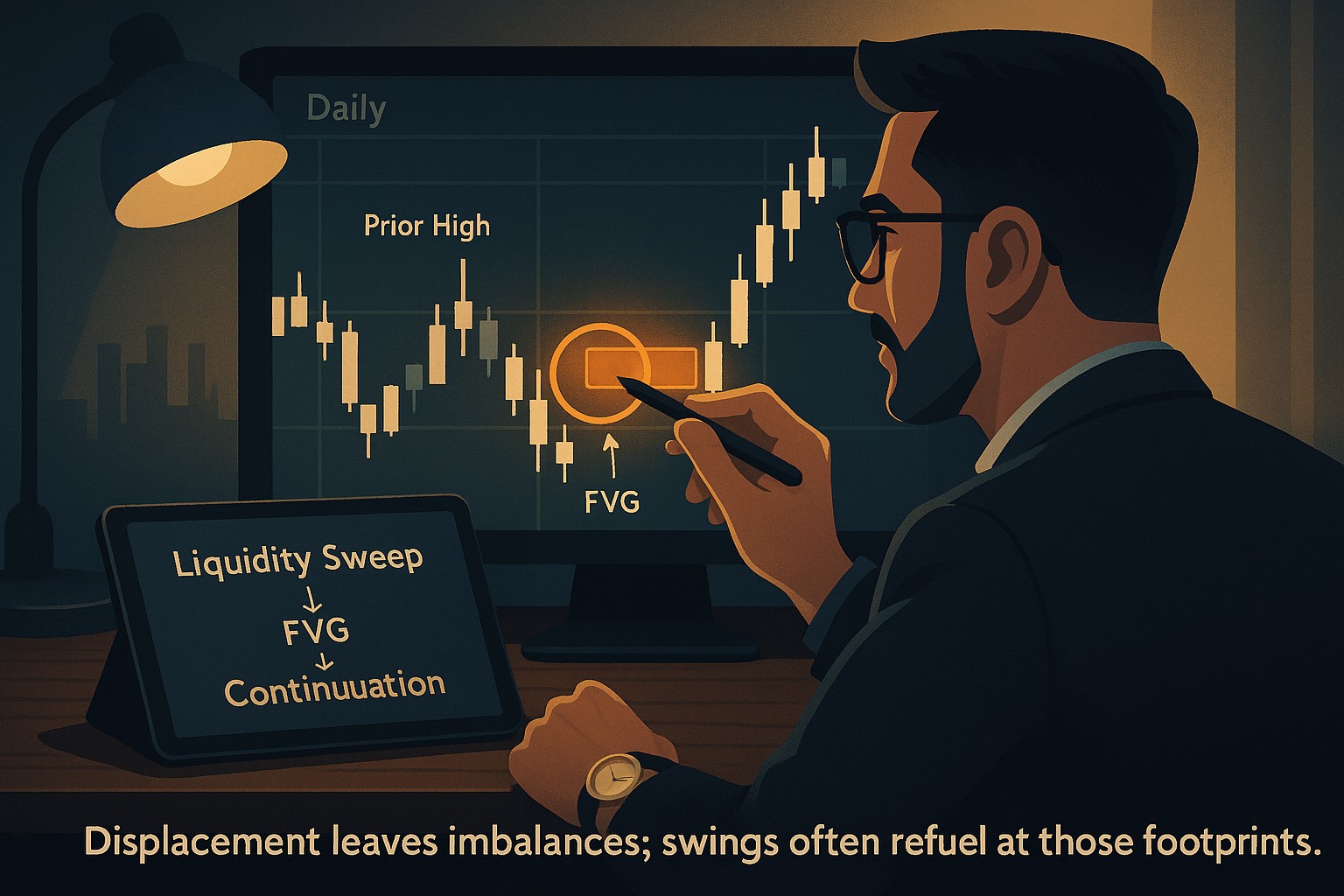 If you’ve ever watched price poke above a weekly high, flush back into a daily imbalance, then expand in trend, you’ve seen the play. For a tight lens on the mechanics, revisit Fair Value Gaps Explained and sharpen your read on where size tends to transact with Institutional Order Flow. Add the missing puzzle piece - why the sweep happens first - with Understanding Liquidity Sweep so you stop mistaking preparation for reversal.
