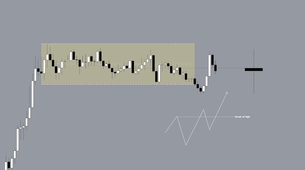 Since the other premise is that liquidity has now been engineered by making a range bound price action, we wait for the high or low to be taken out. We’d like price to do something with the high and low during the London session.