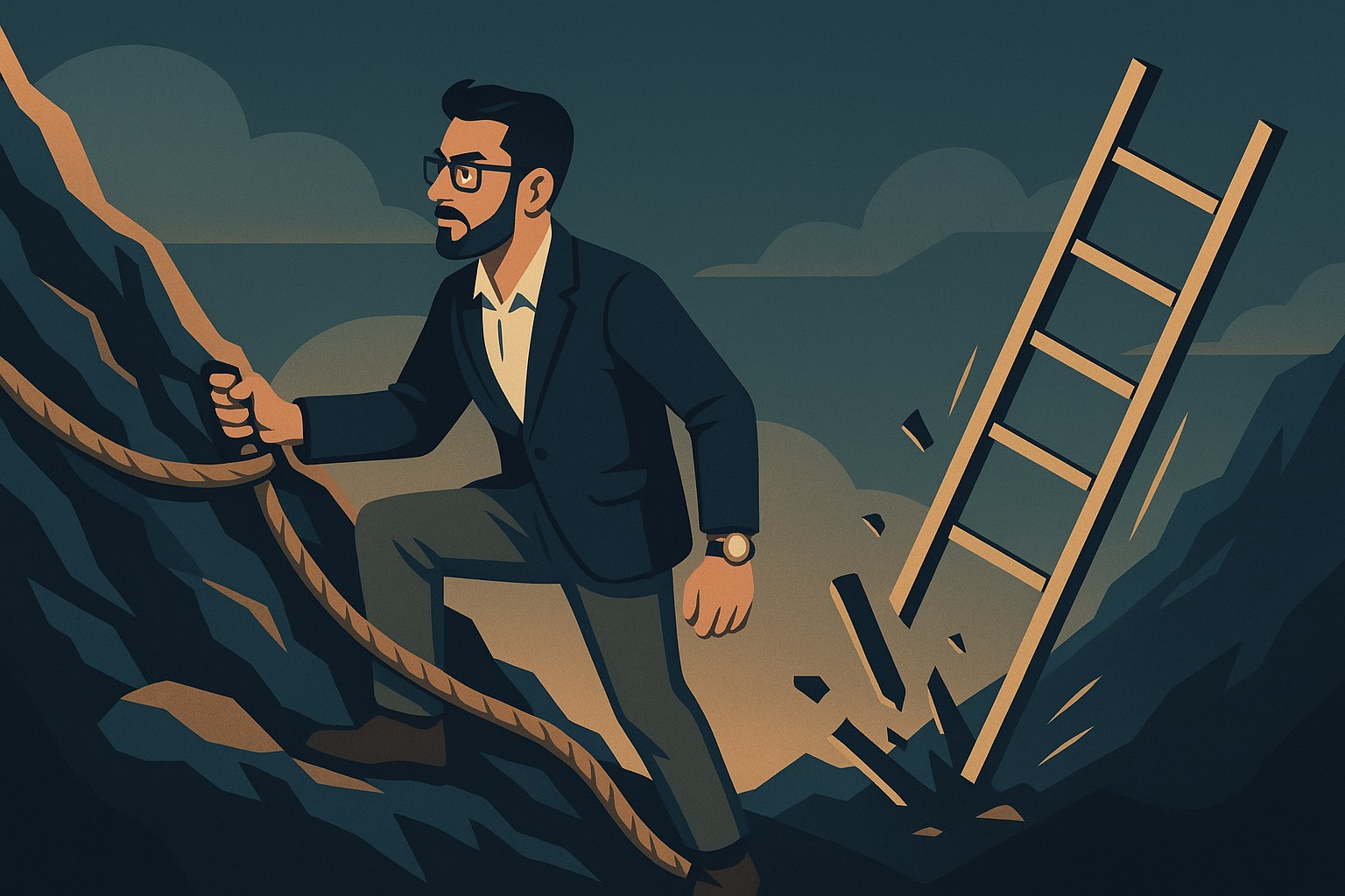 Which climber would you rather be? If your answer is the one with anchors, make sure your anchors are real risk rules, not wishful thinking: Why Risk Management Is the Only Edge That Lasts.