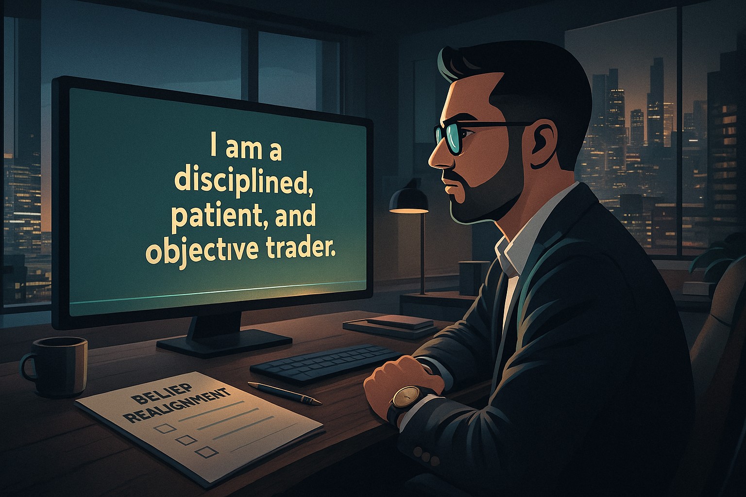 Beliefs are not permanent. They are installed and reinforced through repetition and emotional charge. That is why Douglas uses affirmations as a deliberate tool instead of leaving your inner dialogue on autopilot. In trading terms, affirmations are like manual overrides for old scripts that no longer serve you.