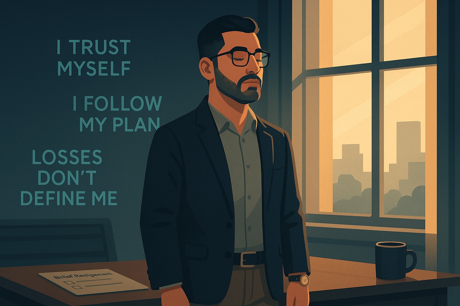 Psychology research backs this up. Studies on self efficacy show that what you believe about your ability to perform strongly predicts how you actually perform under pressure. Simply Psychology In other words, your market performance is tightly connected to what you repeatedly tell yourself about who you are.