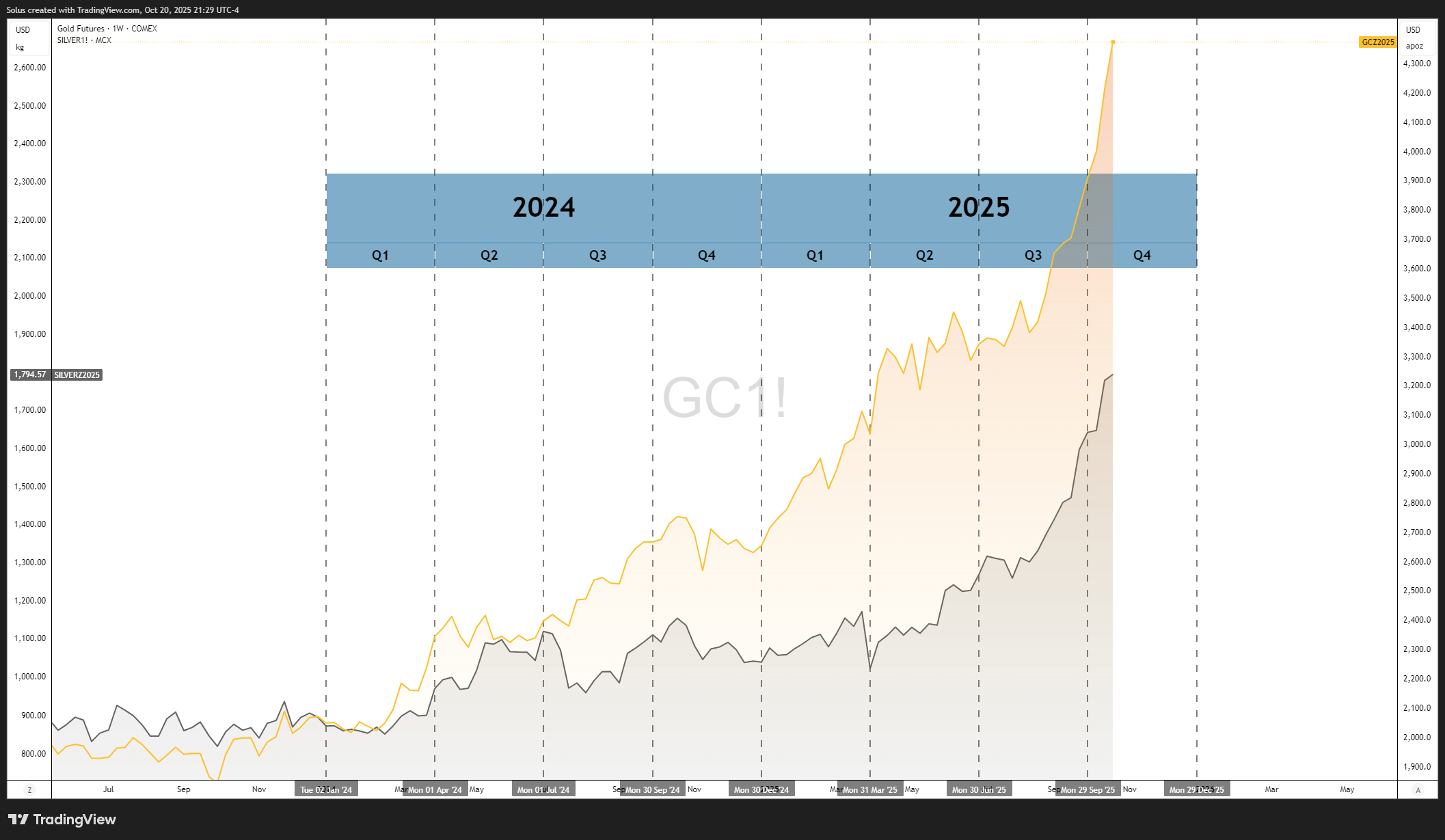 4. Execution: Take the silver continuation; watch gold for lagging alignment and potential catch-up.