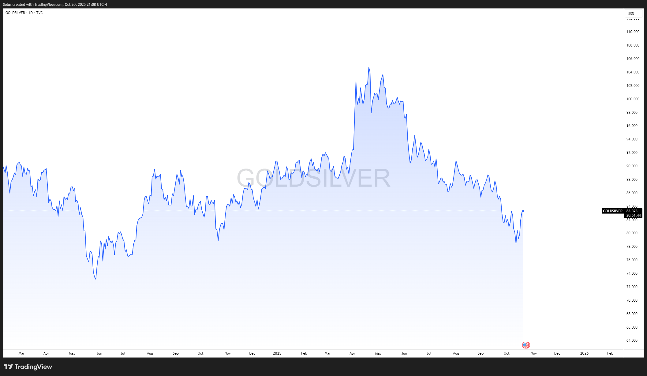 The small uptick to ~83 signals a short-term risk-off reaction, possibly a pause or pullback after silver’s strong outperformance. Traders would interpret this as a temporary rotation back to gold, not yet a full reversal unless GSR continues to rise toward the 90+ range.
