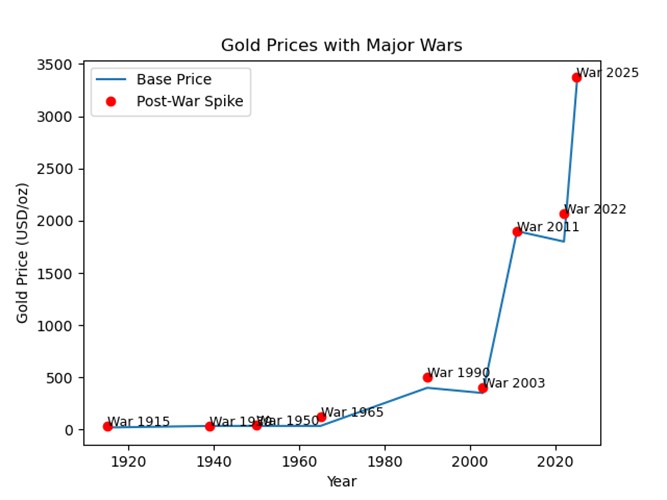 From the fixed prices of World War I and II ($20.67–$35/oz) to the post-1971 era, when the end of the gold standard unleashed market-driven spikes, wars like Vietnam, the Gulf War, Iraq, Russia-Ukraine, and the 2023 Israel-Hamas conflict consistently drove prices upward, often by 5–10% at the onset.