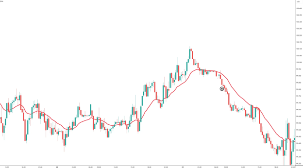 Moving averages like the 20EMA or 50EMA act as dynamic trailing stop levels.