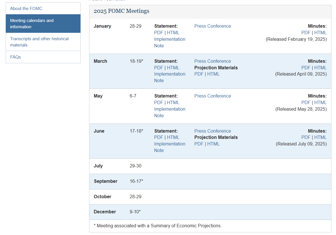 We can see that the next FED meetings will be held on July, Sep, Oct and Dec, and also we can see the days!