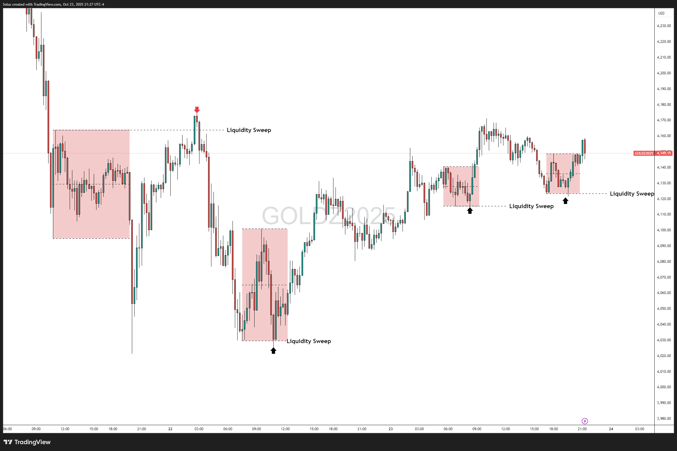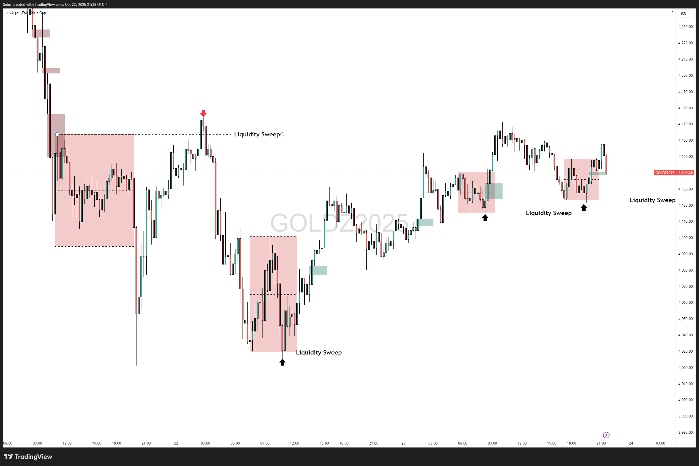 Volatility in metals leaves deep imbalances. After major data releases, gold often prints large impulsive candles, leaving an FVG; when price later revisits this zone, it’s often a re-entry point for institutional flows - and a low-risk entry zone for you. Get a quick refresher here: Fair Value Gaps Explained.