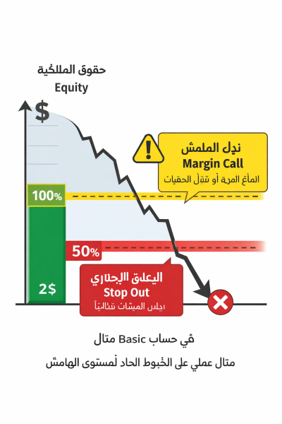 إذا استمر السعر في الاتجاه السلبي، يغلق الوسيط صفقاتك تلقائيًا لحماية الحساب من الخسائر الكاملة.