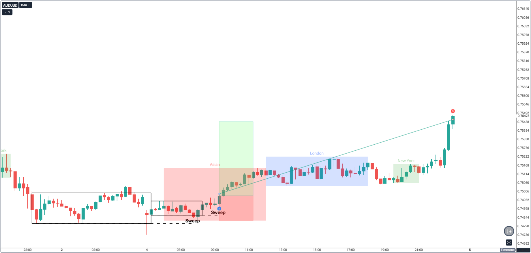 2. Use AMD entry model during Asia. AUD/USD gives excellent manipulation–distribution setups early in the week