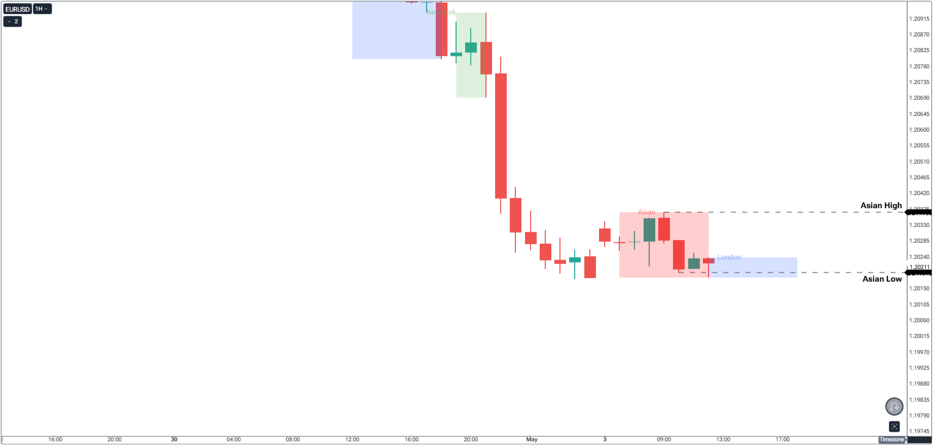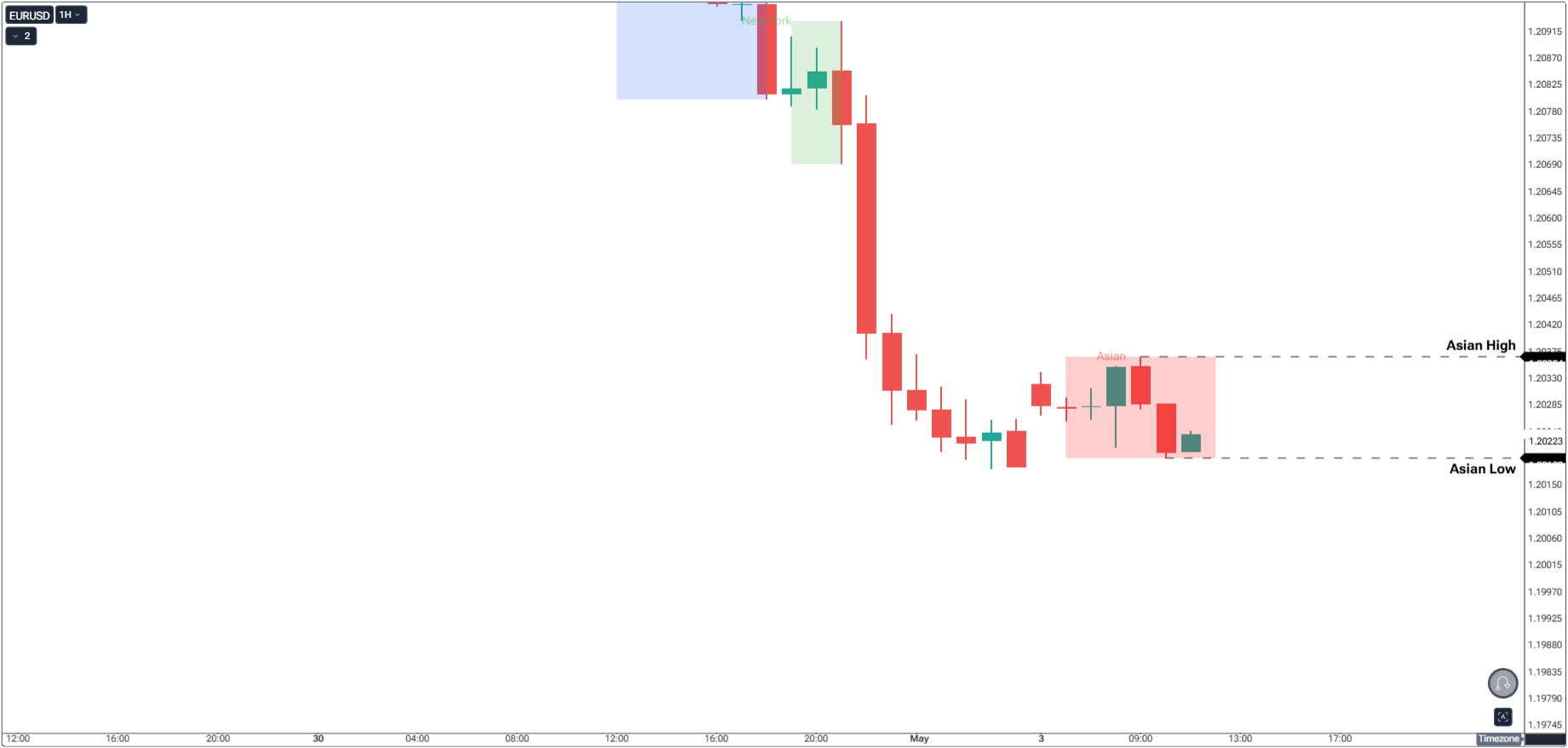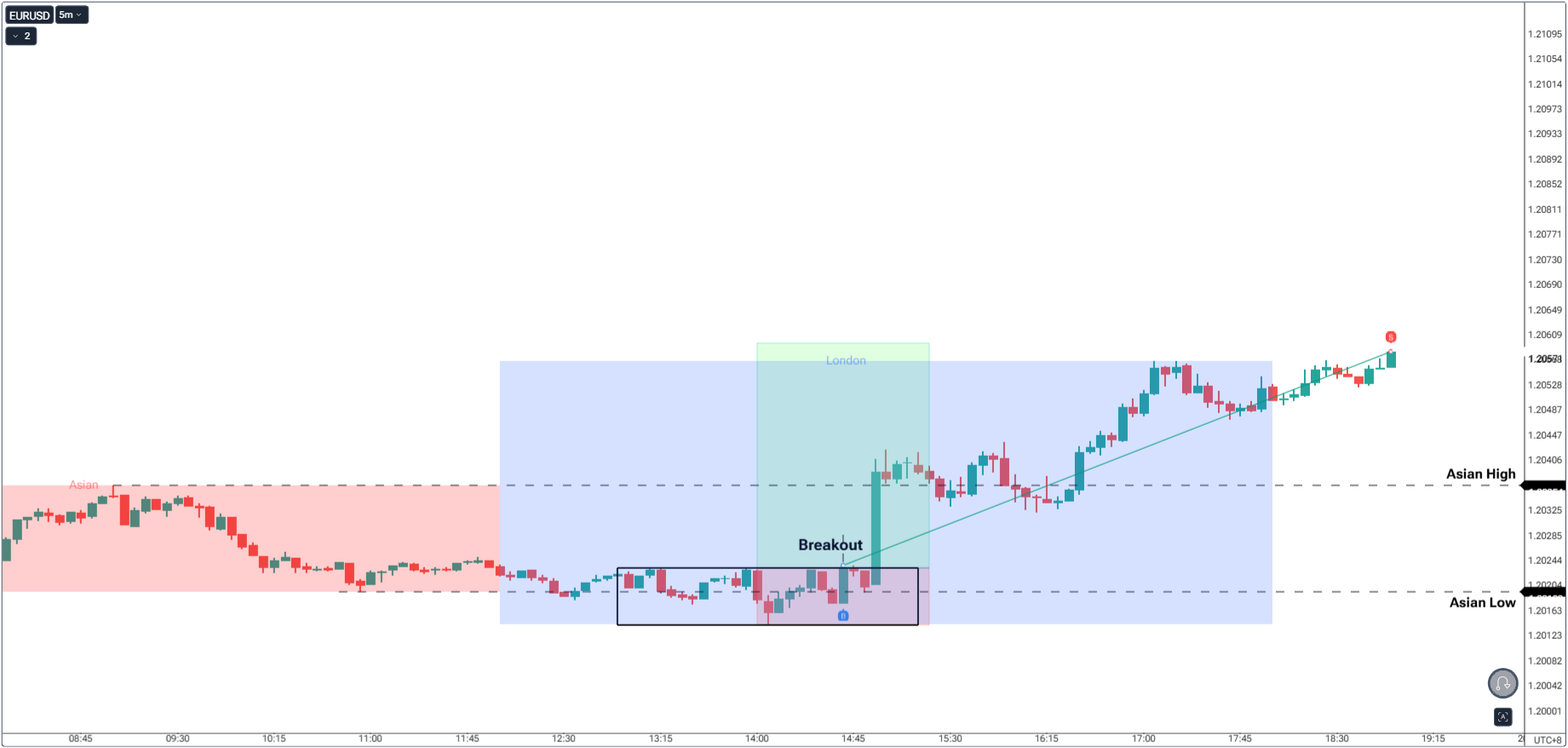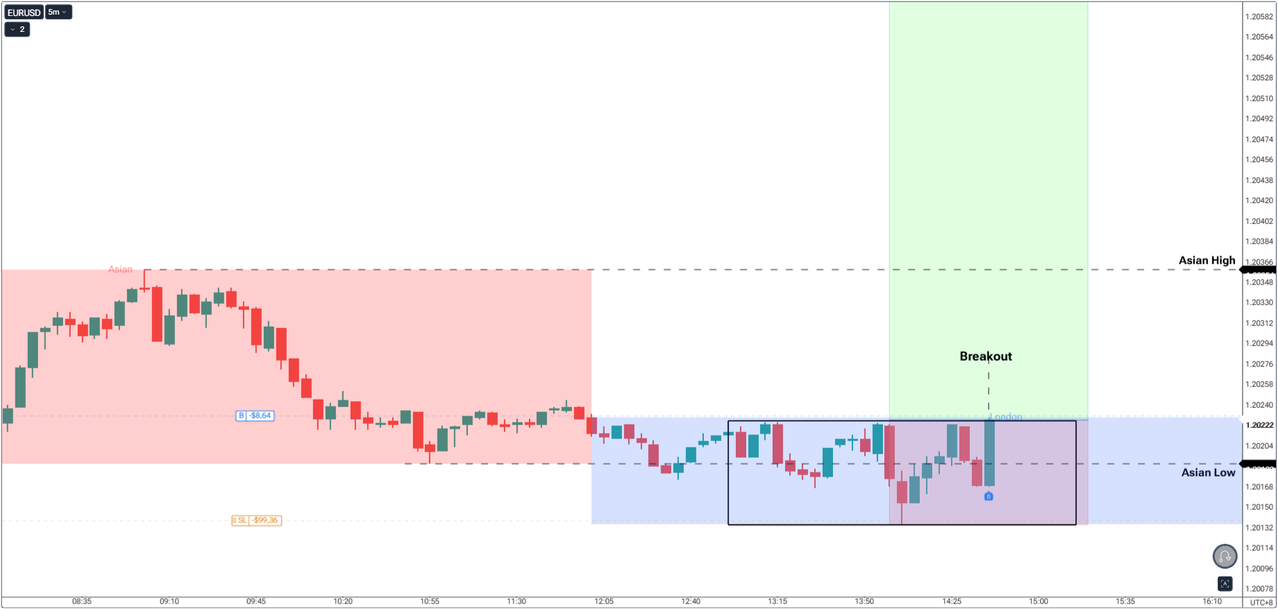 In this case, for London trades, wait for a test on Asian High / Lows.