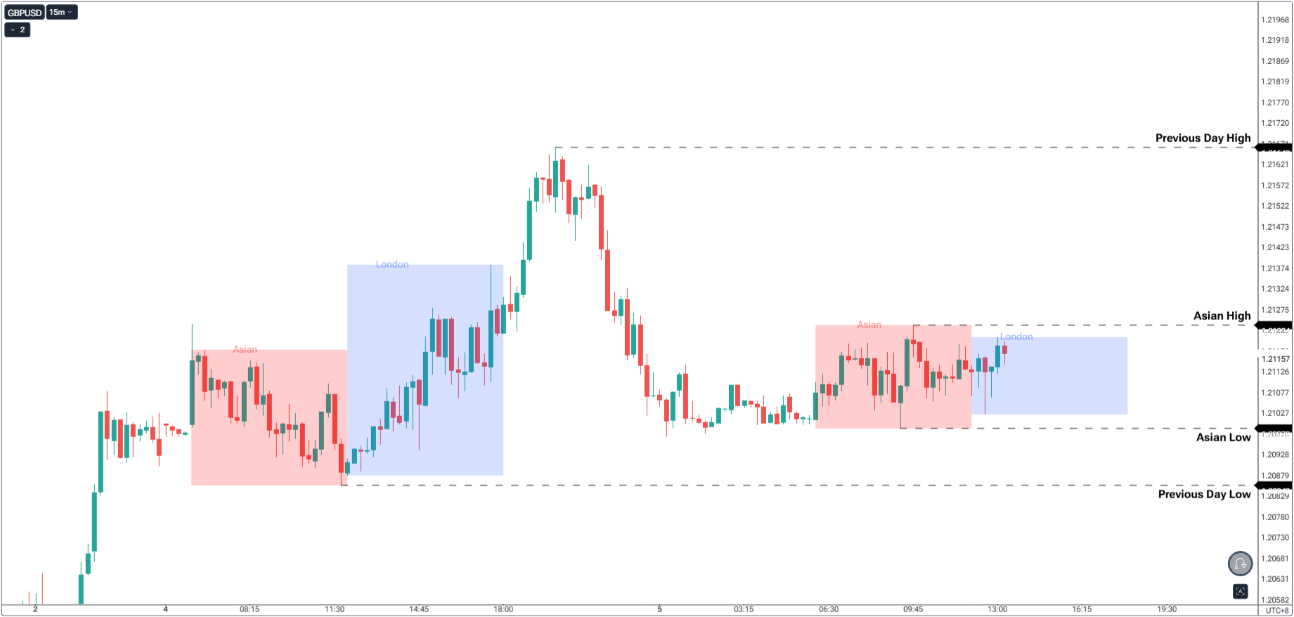 1. Mark Previous Session Highs/Lows: These get swept regularly