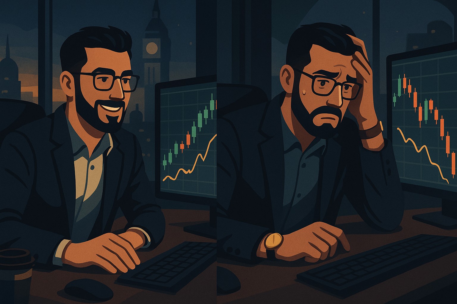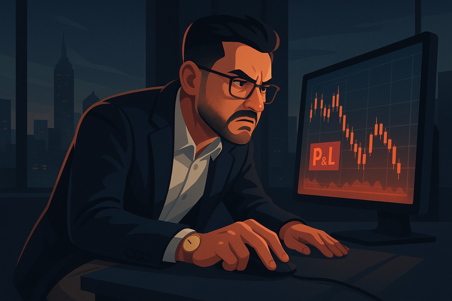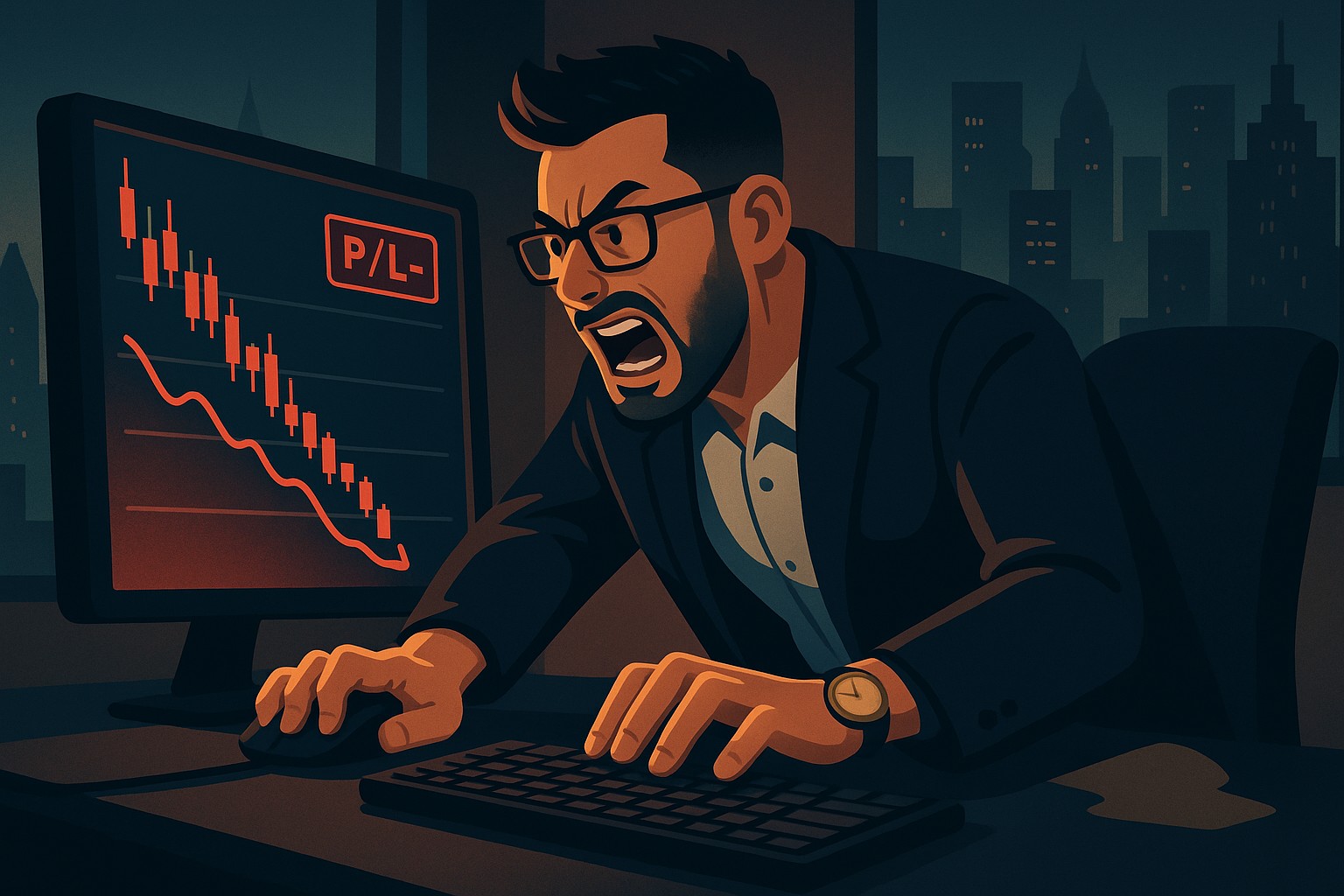 Minutes stretch into hours. The market keeps sliding, and what was once a floating profit now bleeds red. Instead of exiting, you add another position. You’re no longer trading your system - you’re trading your hope.