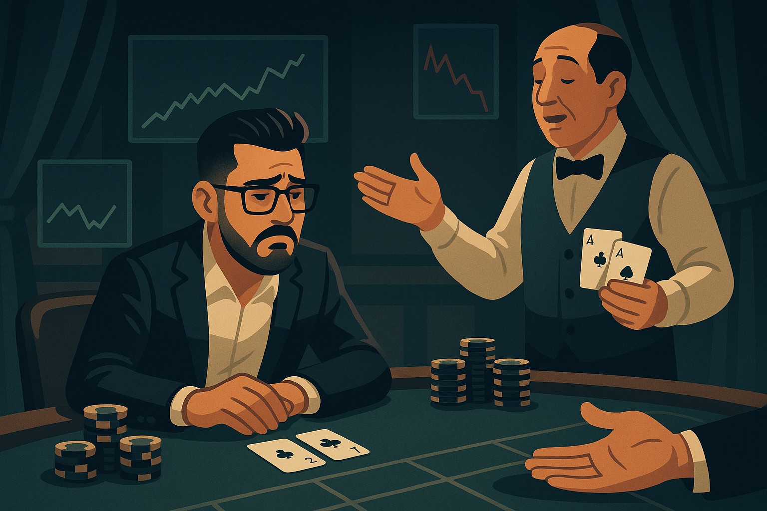 Imagine a gambler sitting at a roulette table. He keeps losing but whispers to himself, “My number will come. It has to.” He keeps placing chips, waiting for the turn that never arrives.