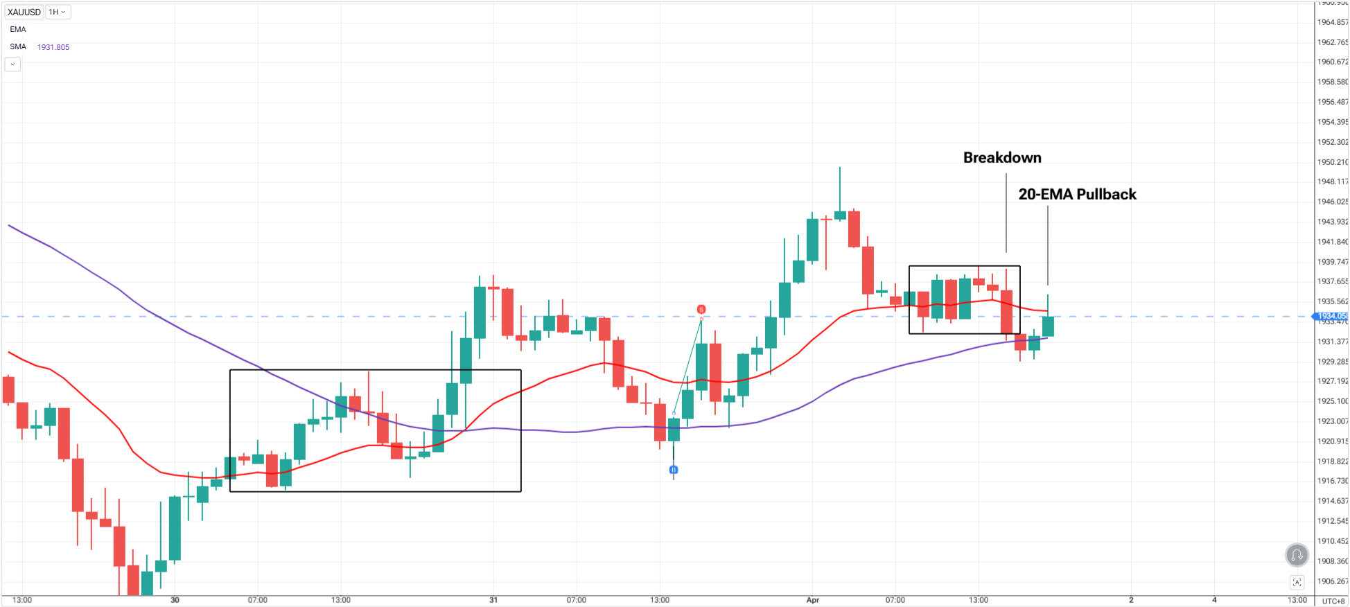 1. H1 shows a shift in trend after Gold broke out of the range + above the 20-50 Moving Average