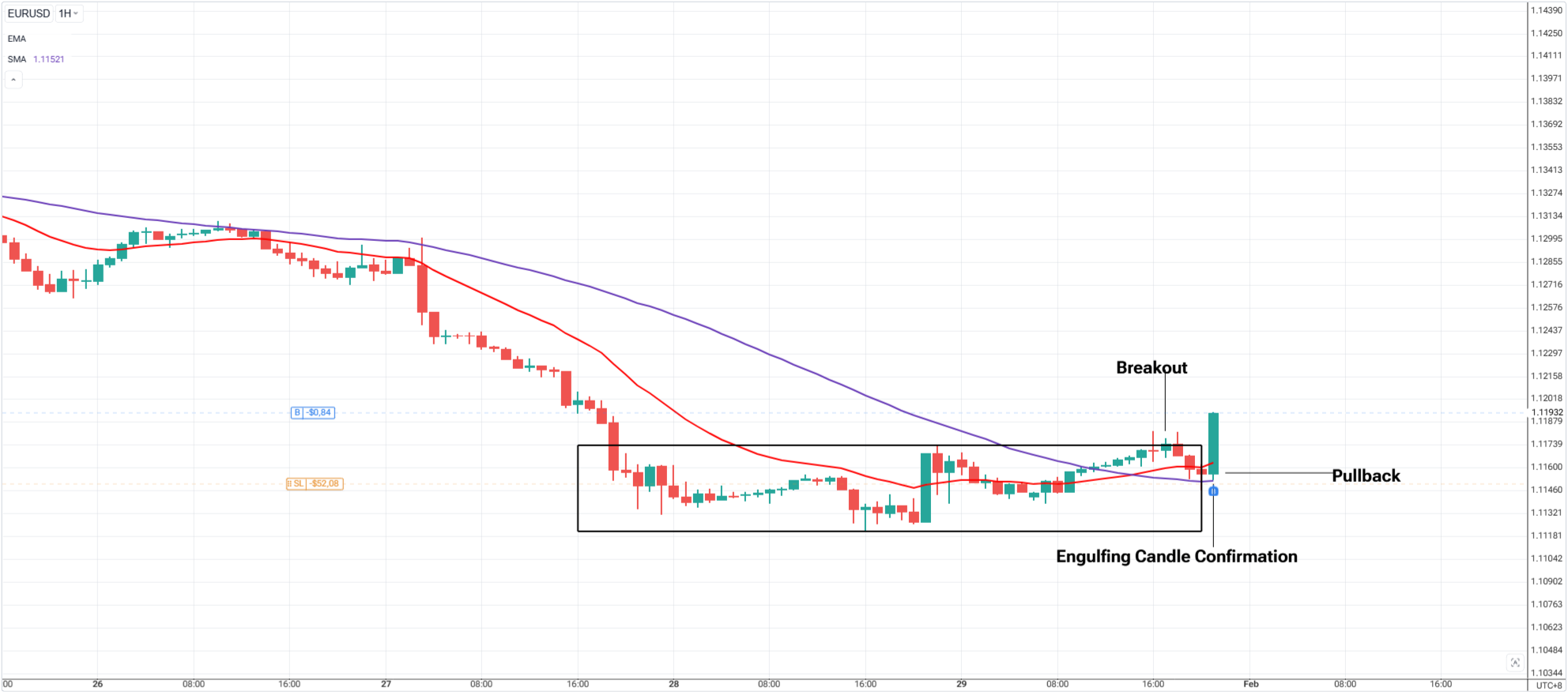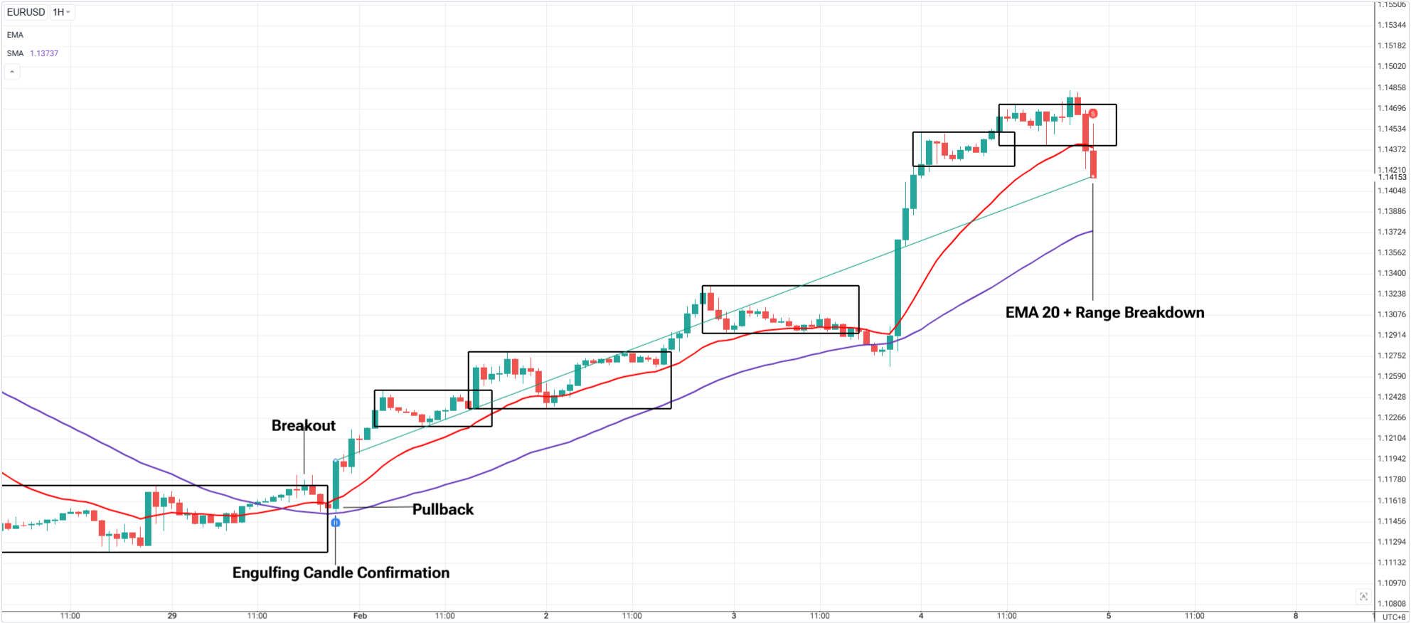 The Strategy: Break and Retest Entry + Stops Using 20 EMA + 50 SMA