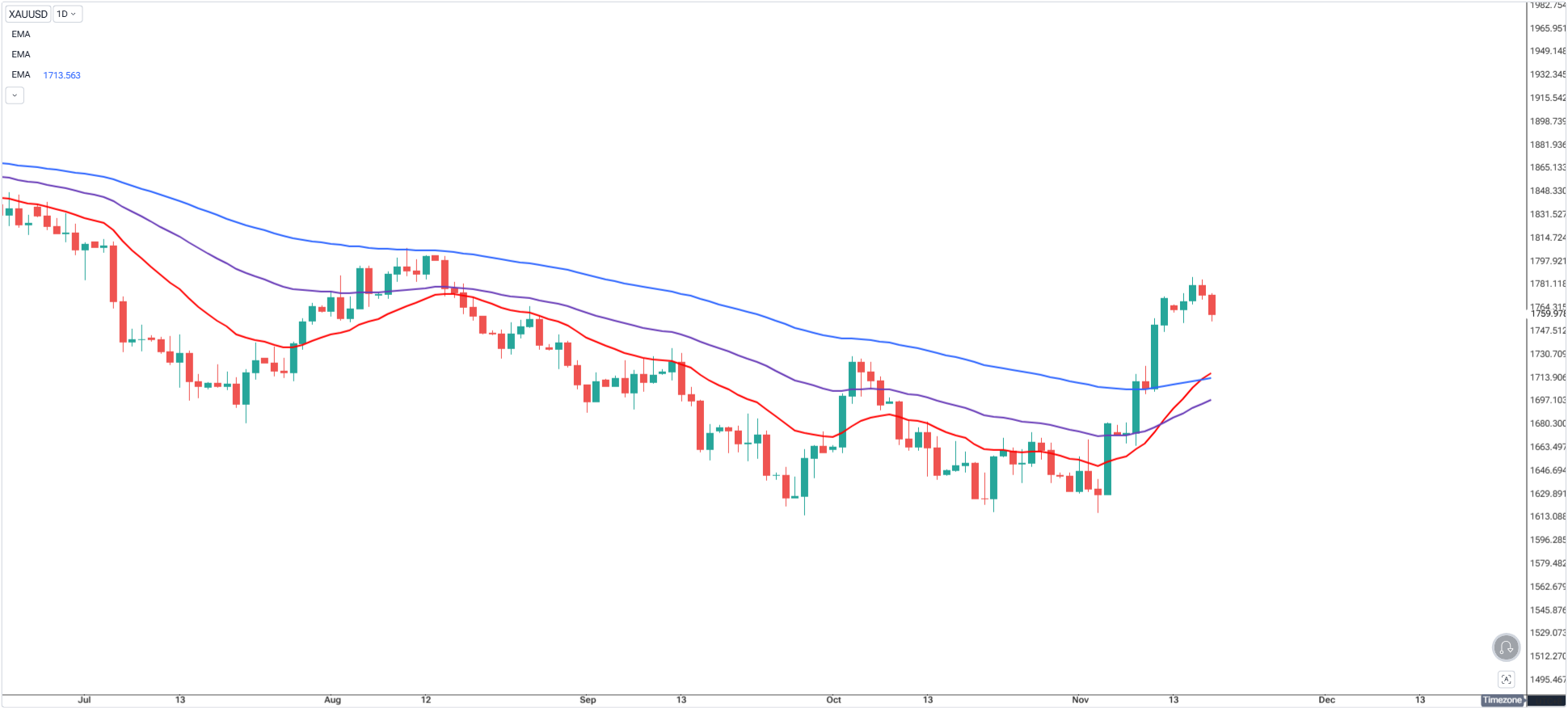 In this example, we are using the 20-50-100 Moving Averages on the Daily Timeframe.