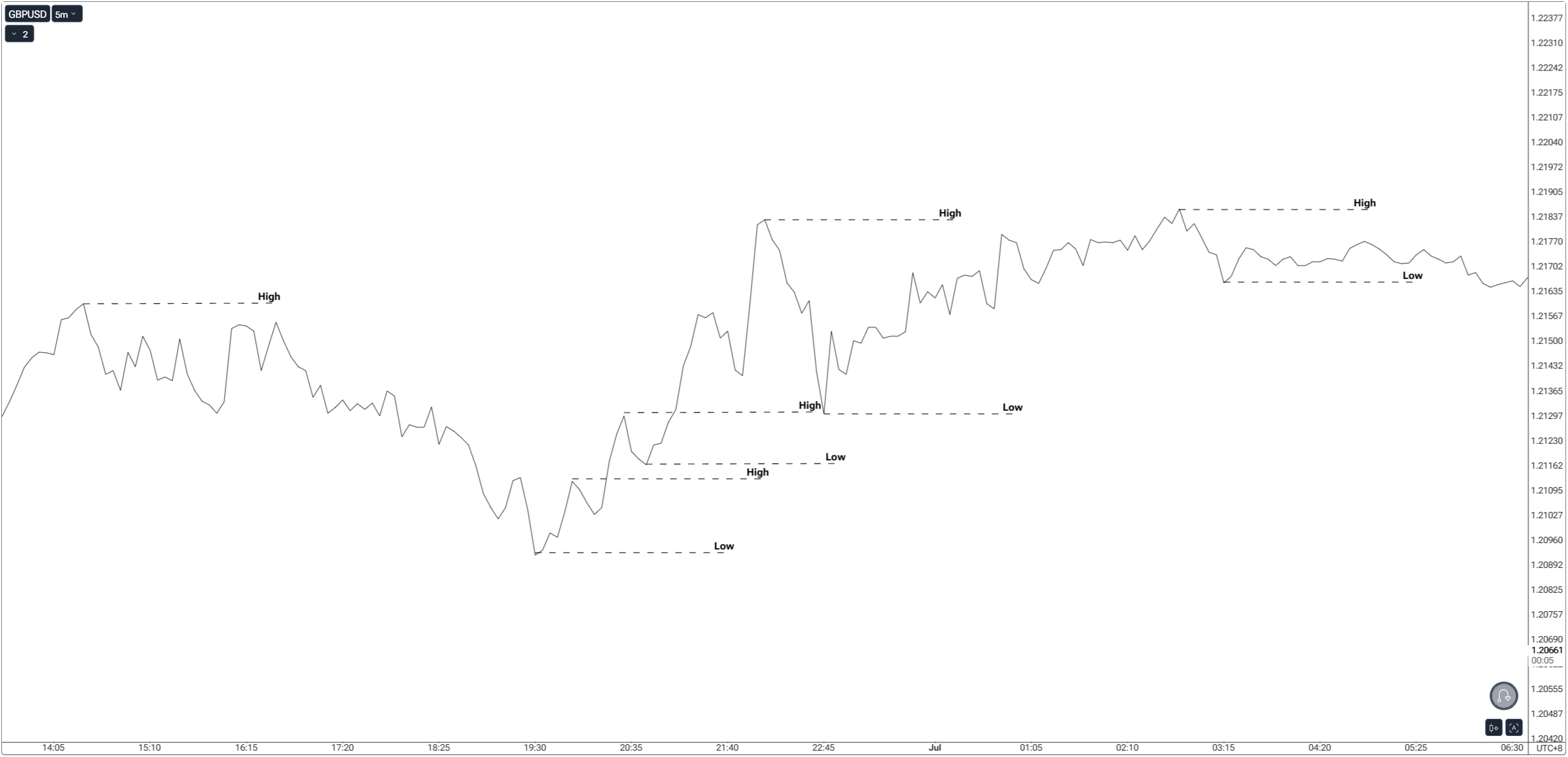 • Mark prior session/week/month swing highs and lows.