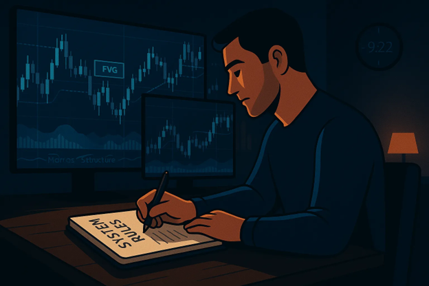 A trader wakes up early, meditates, journals his goals, recites affirmations, and approaches the chart with laser focus. His mindset is sharp. But his system?
