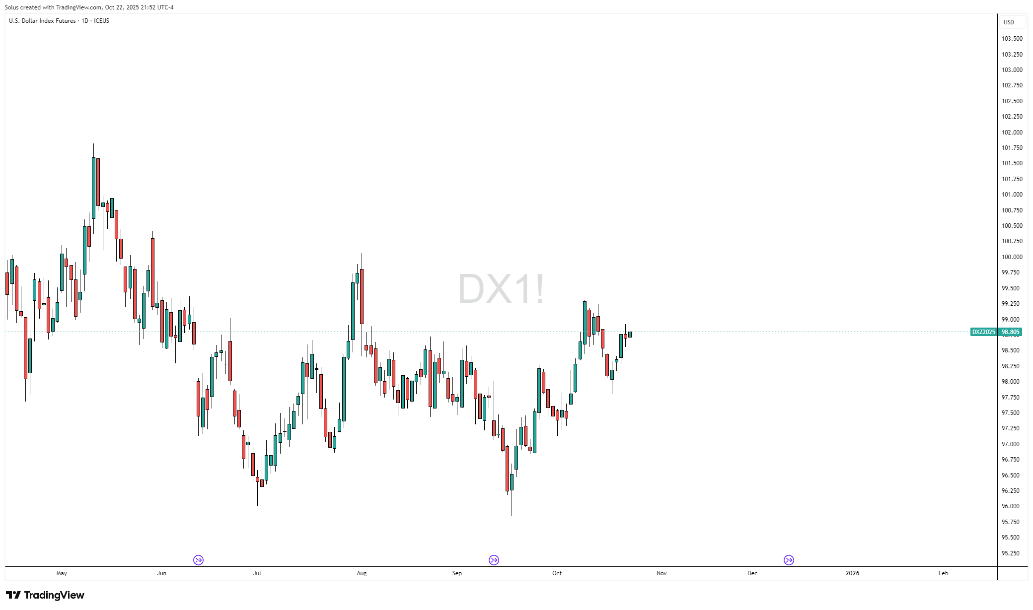 Observe how they move relative to one another. A falling DXY + rising S&P + calm VIX = risk-on. A spiking VIX + falling yields + gold breakout = risk-off.