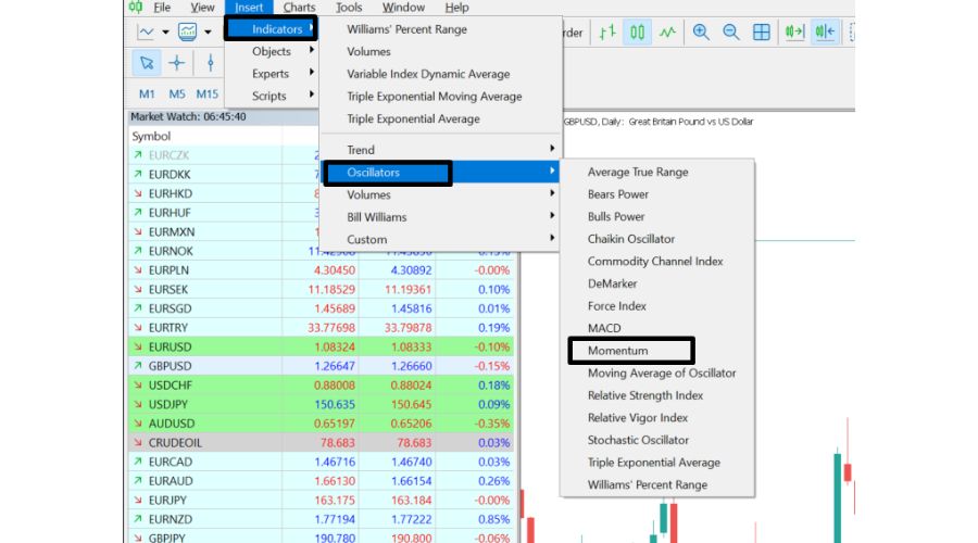 For example, if we look at a daily GBP/USD chart, the momentum indicator might show significant oscillations, which traders can monitor for potential trading signals.