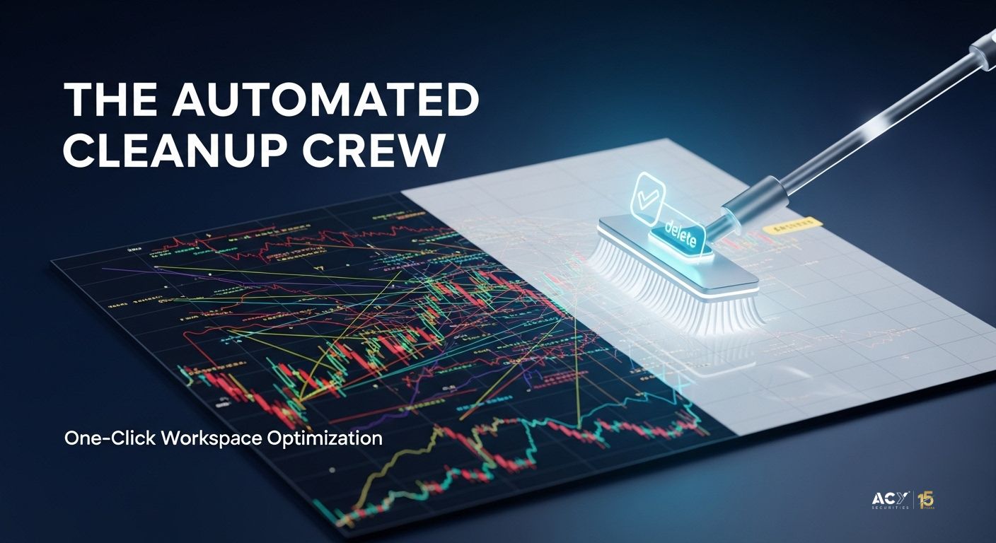 The Problem: After a few hours of analysis, your charts can become a mess of old trendlines, Fibonacci retracements, notes, and indicators from previous sessions. This visual clutter leads to "analysis paralysis" and can subconsciously bias your decisions based on outdated information. Manually deleting dozens of these objects is a tedious, time-consuming process that drains your mental energy, energy that should be reserved for high-value market analysis.