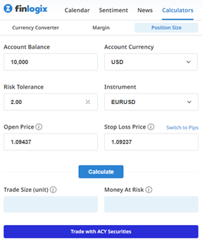 Not only a position size calculator but you still have access to the Finlogix Economic Calendar!