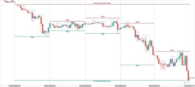 Step 1: Mark key liquidity zones pre-release (previous day highs/lows, session highs/lows, range highs/lows)