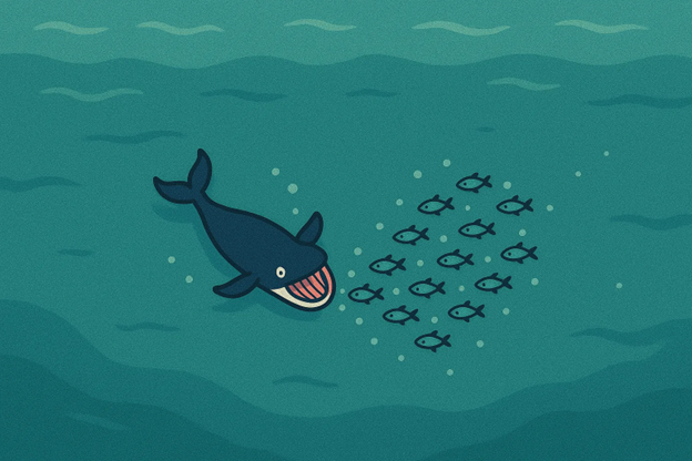 Think of the market like a giant whale swimming through an ocean of tiny fish (retail traders). The whale can’t eat just one or two—it needs a school of fish in the same spot to make a move worthwhile.