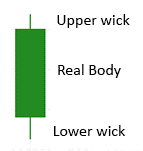 The body is the solid area between the open price and the close price, and the wicks represent the highest and the lowest levels during the timeframe used.