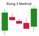 As far as continuation candlestick patterns go, the rising three method is considered one of the strongest.