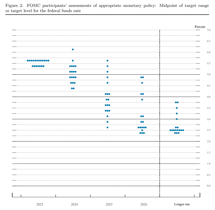 In the latest dot plot, we can observe several key trends: