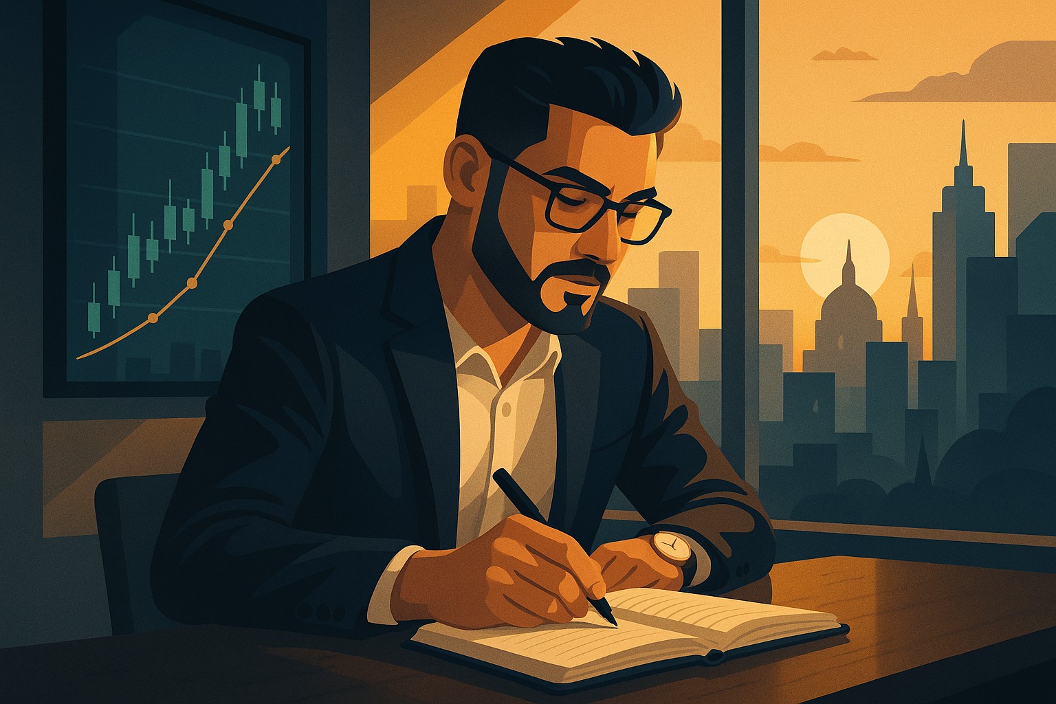 Scene Idea: The Trader staring at his chart, realizing he entered early again - then journaling the emotion, not just the entry.