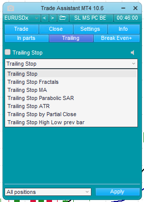 For example, the Trade Assistant Expert Advisors has 7 trailing stops you can use.