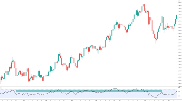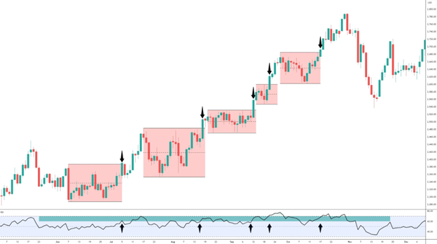 In bullish Gold conditions, RSI > 70 is a green light, not a stop sign.