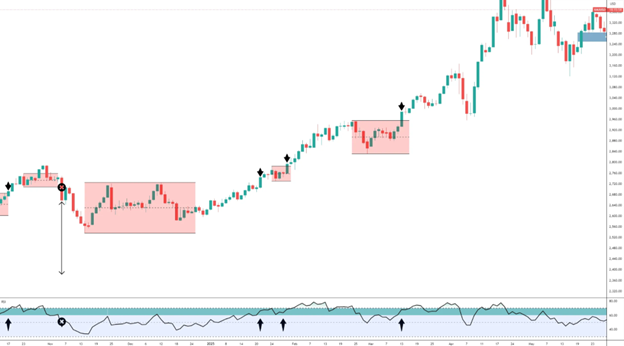 So when you treat RSI like a simple buy-sell switch on XAU/USD, you’ll often get burned.