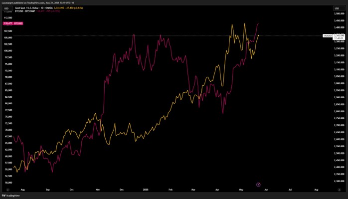 GOLD (Blue Line) x BTCUSD (Gold line)