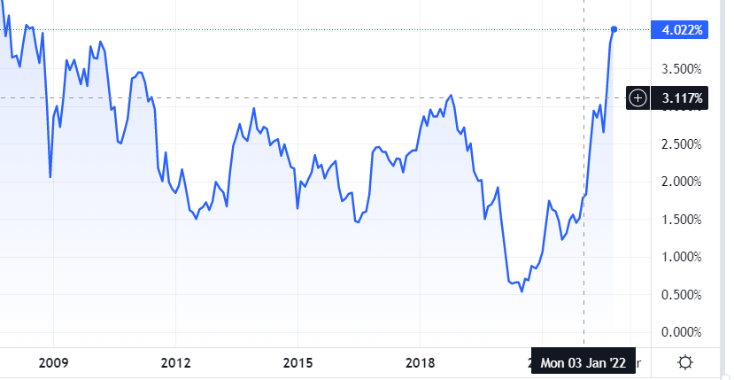 10YR US Yield Ends Above 4% for 1st Time Since 2008; DXY Soars