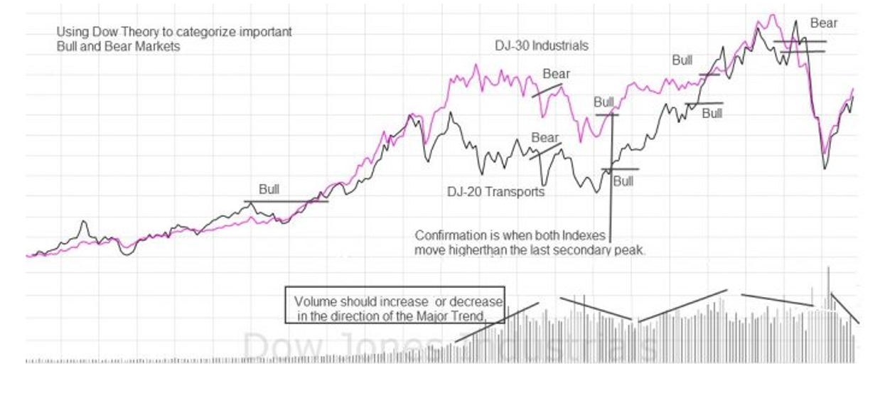 نظرية داو طورها تشارلز داو الذي قام مع إدوارد جونز وتشارلز بيرغستريسر بتأسيس داو جونز وشركاه وطوروا مؤشر داو جونز الصناعي (DJIA). خضعت النظرية لتطورات أخرى في تاريخها الذي يزيد على 100 عام بما في ذلك مساهمات ويليام هاملتون في 1920 وروبرت ريا في 1930، وإيه جورج شيفر وريتشارد راسل في 1960 وقد فقدت جوانب النظرية على سبيل المثال تركيزها على قطاع النقل – أو السكك الحديدية في شكلها الأصلي ولتوضيح ذلك، قامت شركة داو بمقارنة السوق بالمحيط. وبحسب الخبير الاقتصادي، إذا كنت على أحد جانبي الشاطئ وارتفعت الأمواج حتى نقطة معينة، فإن الأمواج في جزء آخر من الشاطئ ستصل في النهاية إلى نفس النقطة. ويحدث الشيء نفسه مع الأسواق لأنها أيضًا جزء من ذلك.