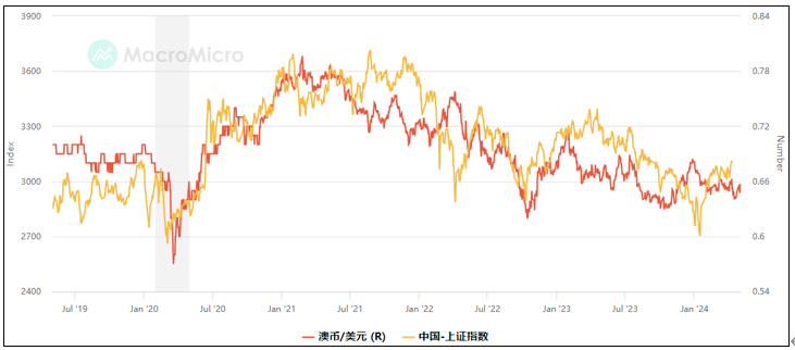 不过若去观察到与澳元联动性甚高的中国股市,这里我们以上证指数为例,若将澳元往前移动一个月,发现当中国股市上涨时,往往澳元也会跟着上涨,意味着中国股市有些许领先作用,毕竟中国是澳洲铁矿砂的主要进口国。
