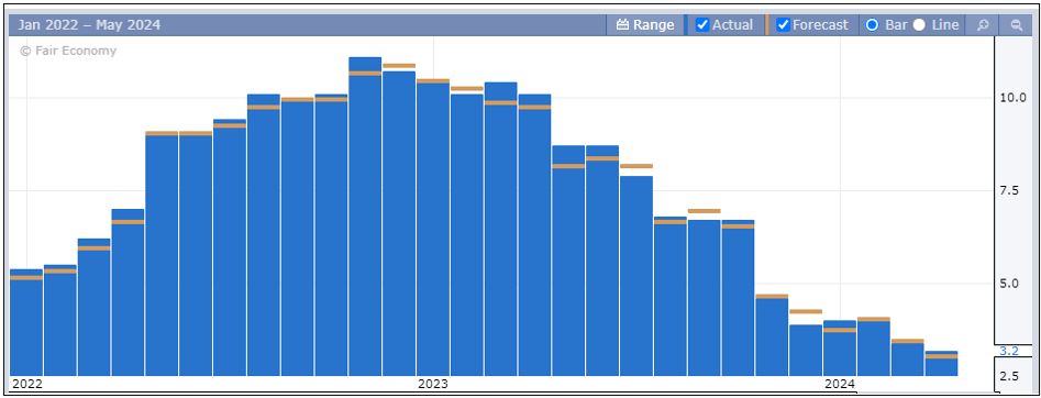 欧洲通胀初值数据出炉后低于市场预期(预期:2.5% vs 实际:2.4%),这强化了欧洲央行官员倾向于6月份首次降息的观点。欧央在4月利率会议后的声明提及当前通胀持续向目标靠拢,后续若降低货币政策的水平将是适当的。