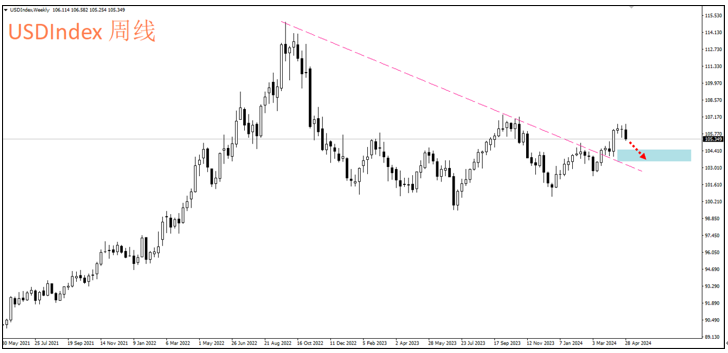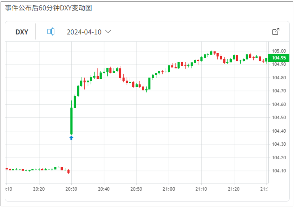 CPI的数据引发市场对于通胀粘滞性的担忧,并进一步导致美联储延后降息时点与幅度的预期,这就带动美元上涨的动力,并在当时强势突破105大关。