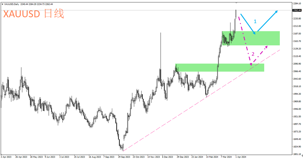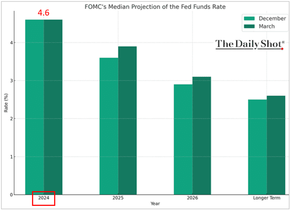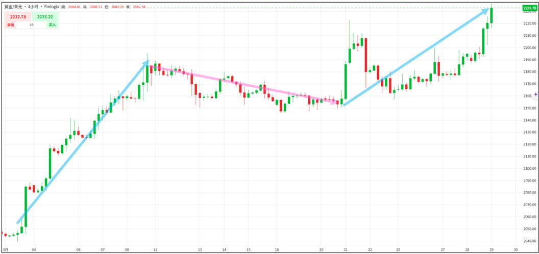 3月下旬美联储利率会议后,点阵图显示美联储官员仍认为今年会降息三次,某种程度上再次确认主席鲍威尔于3月上旬赴国会发表经济证词的谈话,其表示2024年的「某个时后」可能会降息。受此影响,金价再度井喷。