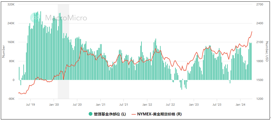 另一方面,衡量大型投资机构的管理基金净部位,目前看多的仓位仍持续累积当中,甚至来到过去两年最高水位,若当前的动能持续,金价或有机会再走高。