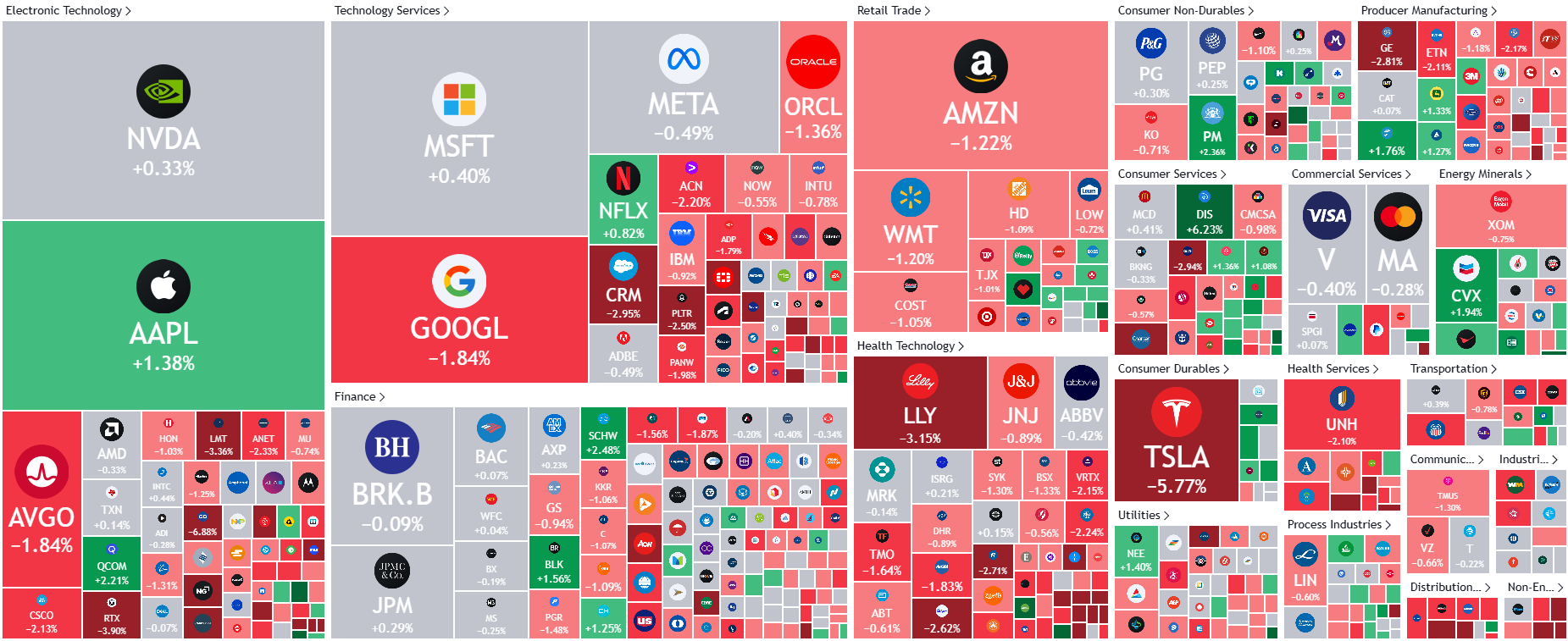 标普成分股一日热力图