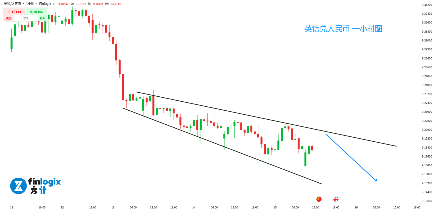 交易策略:(趋势跟随)配合中国经济报告,9.185附近顺势看空;如果报告不佳,则回踩9.19-9.2高空